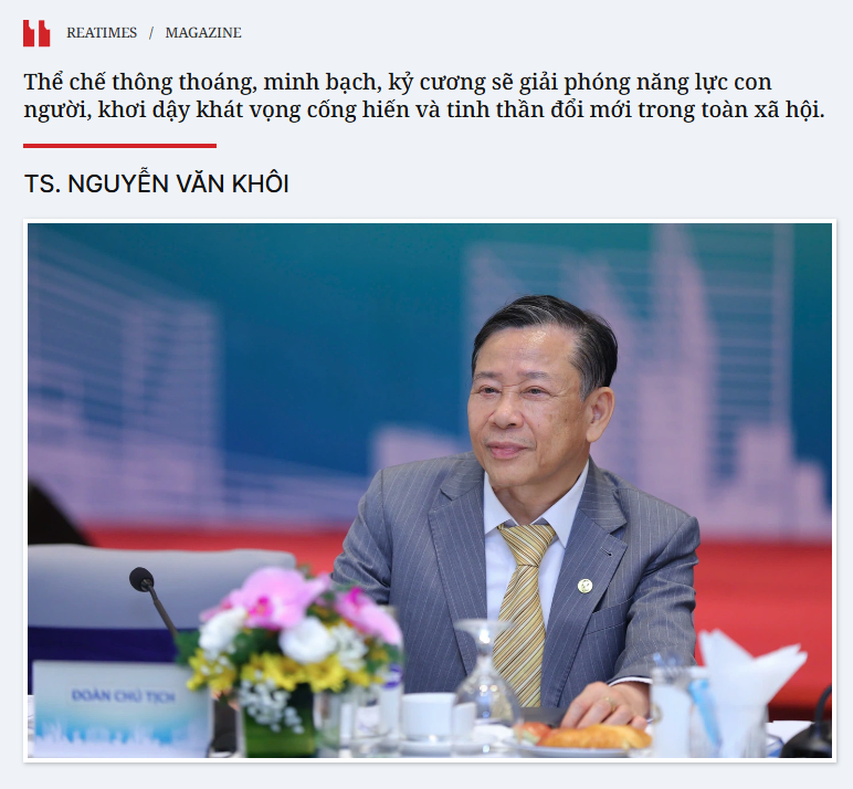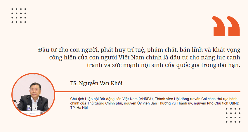 TS. Nguyễn Văn Khôi - Chủ tịch Hiệp hội Bất động sản Việt Nam, Thành viên Hội đồng Tư vấn cải cách TTHC của Thủ tướng Chính phủ, nguyên Ủy viên Ban Thường vụ Thành ủy, nguyên Phó Chủ tịch UBND TP. Hà Nội