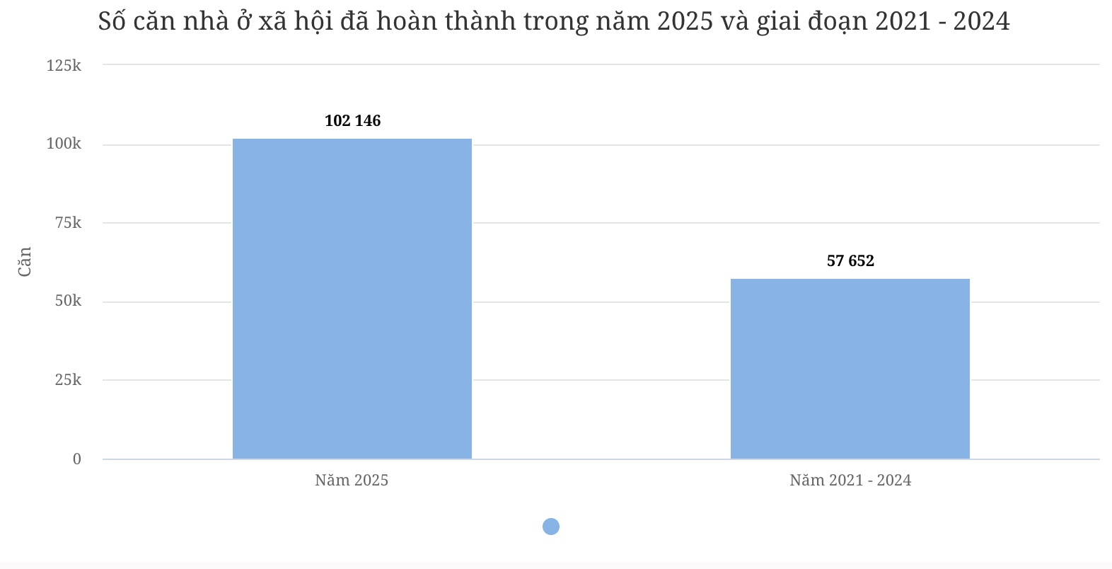 Không chỉ nhà ở thương mại, phân khúc nhà ở xã hội - vốn được xem là phân khúc "khó làm, khó lời" - cũng ghi nhận sự bứt phá mạnh mẽ sau nhiều năm phát triển. Theo ước tính của Bộ Xây dựng, đến cuối tháng 12/2025, cả nước đã hoàn thành 102.146 căn nhà ở xã hội, đạt 102% kế hoạch được Thủ tướng Chính phủ giao cho cả năm và vượt xa tổng số hoàn thành trong cả giai đoạn 2021 - 2024.